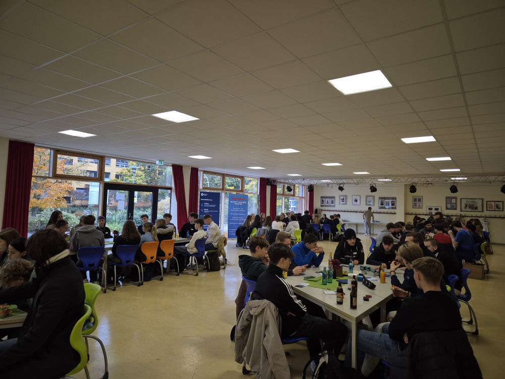 das Meet & Eat statt – unser erfolgreiches Format, das Schüler*innen mit regionalen Unternehmen, wie das Finanzamt Potsdam, Novapax Kunstofftechnik, Stadtwerke Potsdam und S&T Gebäudetechnik, bei einem gemeinsamen Mittagessen ins Gespräch bringt. In diesem Jahr nahmen Schüller*innen der 9, 10 und unserer SEK II teil. Sie hatten die Gelegenheit, in entspannter Atmosphäre mit Vertreter*innen aus verschiedenen Betrieben über Ausbildungswege, berufliche Perspektiven und Bewerbungsverfahren zu sprechen. Ziel des Formats ist es, Hemmschwellen abzubauen, direkte Kontakte zu ermöglichen und den Austausch zwischen Schule und Wirtschaft zu stärken.