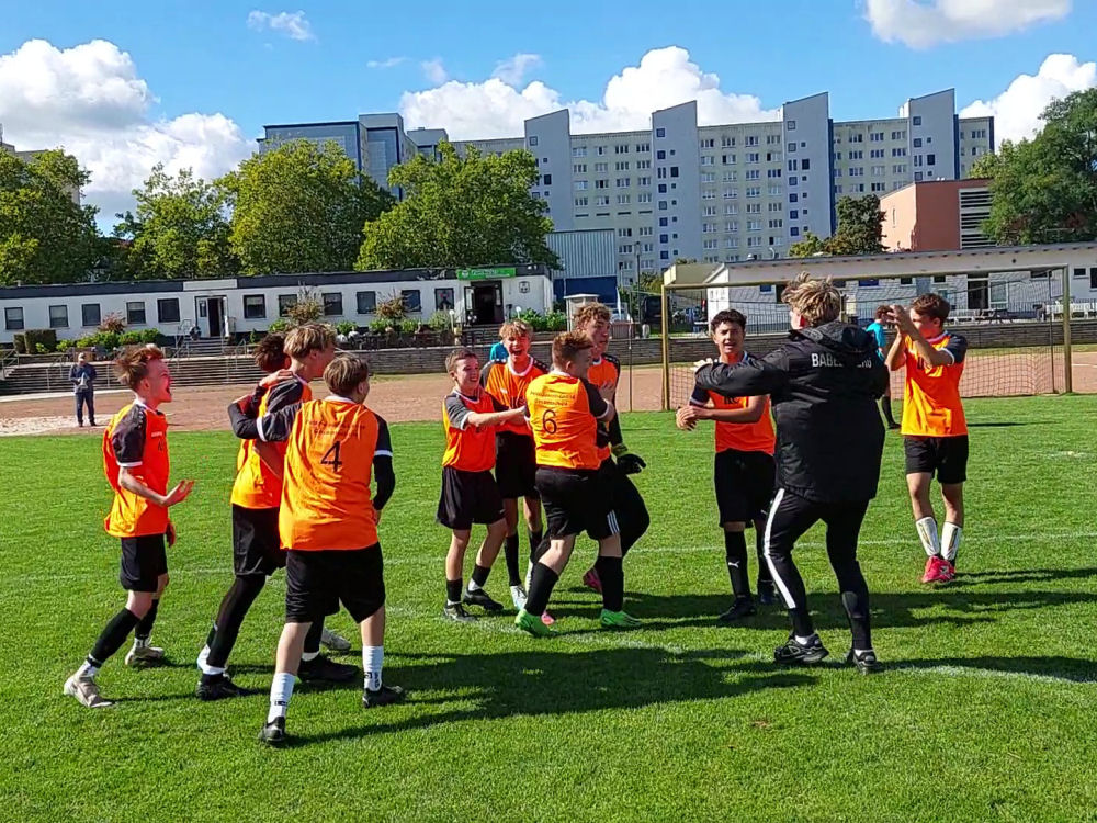 Um unseren Torwächter Maxim aus der 9/2 fanden sich 9- und 10-Klässler, unterstützt von den Youngstern Kenai (Jg8) und Enoh (Jg7). Die sportliche Teamleitung übernahm Jens Prahl, ein ehemaliger Schüler des letzten Abi-Jahrganges.