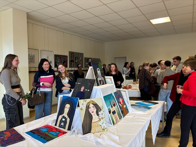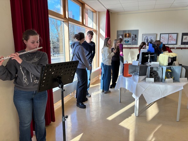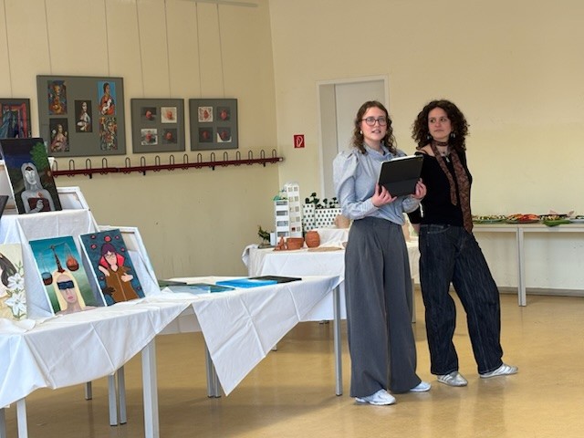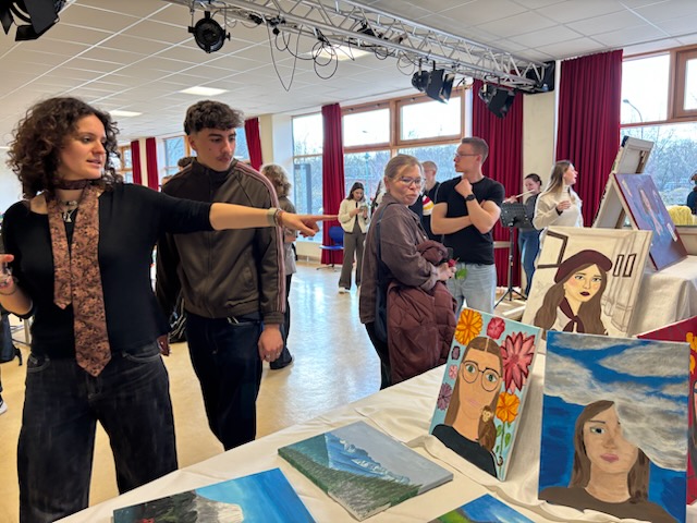 und bereiteten sich auf deren Vernissage vor. Diese fand am gleichen Nachmittag statt. Auch Schülerinnen und Schüler aus anderen Klassenstufen sowie Familienangehörige, Freunde und Lehrerinnen bestaunten zur Eröffnung die vielfältigen Kunstwerke.