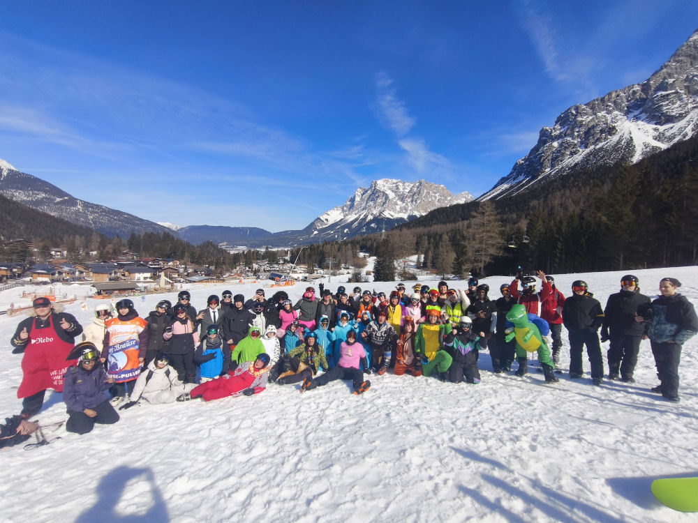 gemeinsam mit Schülerinnen und Schülern des 12. Jahrgangs, acht Lehrkräften sowie Ehemaligen eine ereignisreiche Woche in der Zugspitz-Arena in Biberwier. Nach einer langen Anreise erreichten alle am Sonntag um 18.00 Uhr das Hotel Alpina-Regina. Kurz nach der Ankunft wurden die Ski- und Snowboardausrüstungen im Hotel ausgeliehen, sodass dem ersten Pistentag nichts mehr im Wege stand.