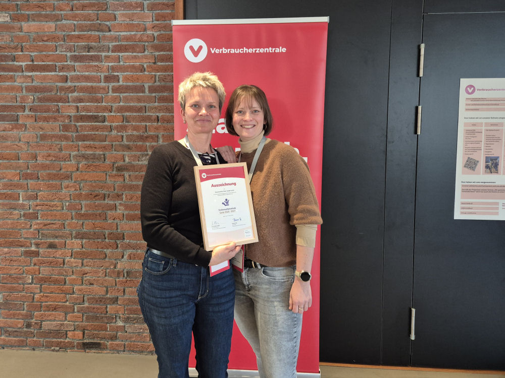 ausgezeichnet wurde. Diese besondere Ehrung würdigt unser kontinuierliches Engagement im Bereich der Verbraucherbildung. Im Rahmen einer feierlichen Veranstaltung wurde die Auszeichnung am 23.03.26 durch die Schirmherrin Dr. Stefanie Hubig überreicht. Stellvertretend für unsere Schule nahmen Frau Ohlert und Frau Krone die Urkunde entgegen und präsentierten damit die erfolgreiche Arbeit unserer gesamten Schulgemeinschaft.
