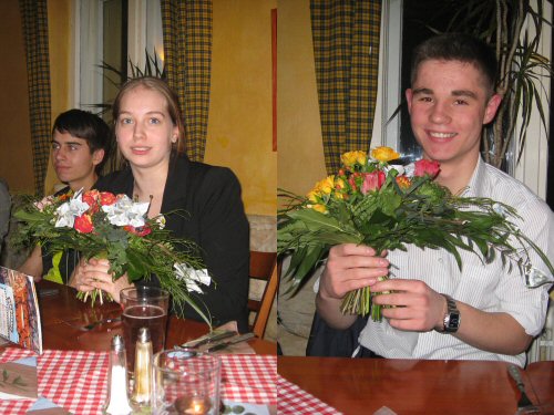 Ein erfolgreiches Geschäftshalbjahr feierten Carsten, Alexander, Felix, Marie, Aaron, Richard, Jana, Sami, Daniel, Richard, Annette und Anna. Eine Schülerfirma kann nur mit in höchstem Maße engagierten, teamfähigen und kompetenten MitarbeiterInnen erfolgreich arbeiten. Genau aus diesem Grund hat sich die Medien & Büro Schüleraktiengesellschaft bei ihrer Vorstandsvorsitzenden Jana Wolter und dem Abteilungsleiter Buchhaltung Daniel Krieg auf ganz besondere Art bedankt.