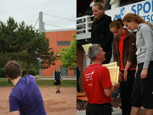 Im Bild 1 der 1000m Staffellauf. Neben den typischen Leichtathletik-Übungen fanden Ballspiele und ein Kanuzeitfahren statt. Am Ende konnten die besten Sportler ausgezeichnet werden (Bild 2). Die Ton & Film SGmbH betreute mit ihrer Tontechnik das Sportfest der Lenné-Schule. Im Bild 3 sind gerade Aaron und Fabian am Werk. Für die gastronomische Versorgung der Sportler sorgten SchülerInnen der 13. Klassenstufe. 150 Grillwürste fanden einen Abnehmer.