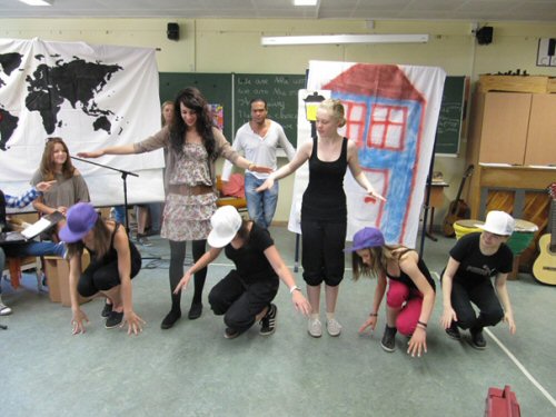 Einige SchülerInnen der Klassen 7-12 erarbeiteten sich das Musical "Oma Erna erzählt", in dem sie ihre individuellen Stärken in den Bereichen Bühnenbild, Gesang, Tanz, Gitarre und Trommeln zeigen konnten (Bild 2). Das Musical wird am 1.6.2012 beim Schulfest vorgeführt. Ein Tanzlehrer wurde vom Förderverein bezahlt.