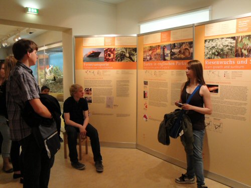Der Naturwissenschaftskurs beschäftigte sich mit bedrohten Tierarten. Insbesondere Eisbären, Wölfe, Fledermäuse und bedrohte Fischarten fanden unser Interesse. So konnten wir abends 21.30 Uhr an der Nuthe Fledermäuse beobachten und gestalteten im Naturkundemuseum selbst eine Führung zu invasiven Tierarten (Bild 4).