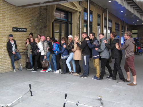 Vier Schülergruppen dieses Kurses organisierten in der Projektwoche eigenständig Studientouren durch London und entwickelten für jede Tour einen Flyer. In London gab es dann Führungen auf den Spuren von Harry Potter und Jack the Ripper, durch Chinatown und natürlich an den bekanntesten Sehenswürdigkeiten um die London Bridge herum. Auf Bild 3 ist der Kurs an seinem Treffpunkt zur Harry Potter Tour zu sehen.