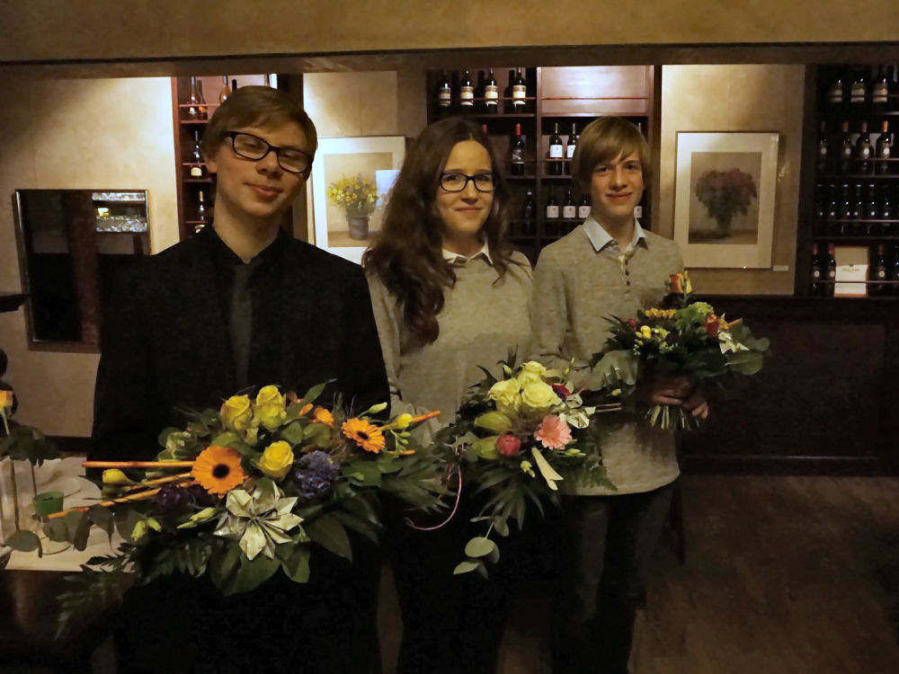 Beim Geschäftsessen konnten Aktivitäten und Erfolge des vergangenen Halbjahres, aber auch Aufgaben für die Perspektive diskutiert werden. Neue Mitarbeiterinnen und Mitarbeiter wurden noch enger in das Team aufgenommen. Als Dank für ihre unermüdliche Arbeit und ihren Weitblick bekamen Daniel, Lisa, Jenny und Merle (Bild 1: v.l.) sowie Enrico, Luna und Erik (Bild 2: v.l.) einen wunderschönen Blumenstrauß. Der erkrankte Till konnten seinen Dank zu Hause in Empfang nehmen.