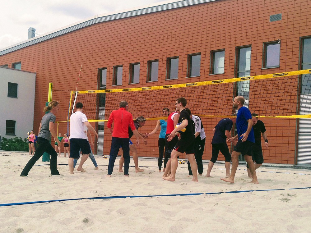 Auch die LehrerInnen erfreuten sich an den tollen Sportanlagen am Luftschiffhafen und spielten nach dem Sportfest noch einige Runden Volleyball (Bild 2).