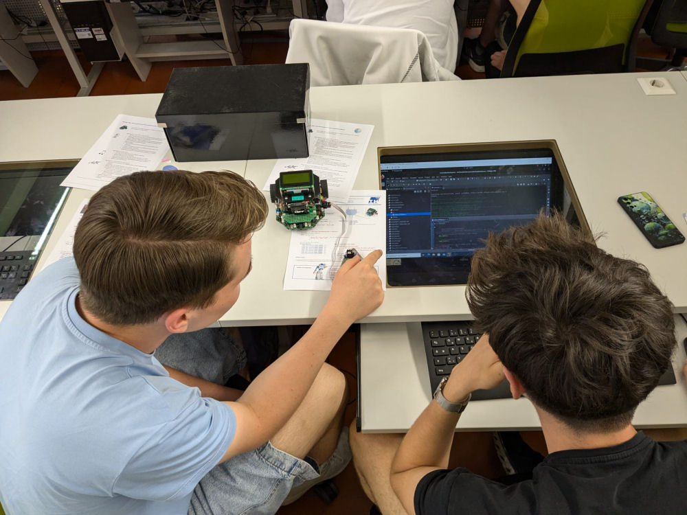 der Exkursionswoche am 11. Juli 2024 die Technische Hochschule Wildau. Im RoboticLab programmierten die Schüler unter C den mobilen Roboter Nibo2 und brachten ihn dazu, vor Hindernissen zu halten oder "Alle meine Entchen" zu spielen. Nach der Stärkung in der Hochschulmensa ging es dann bei einer umfangreichen Campus-Tour rund um Themen wie Studienmöglichkeiten, Wohnheimplätze und Studienfinanzierung.