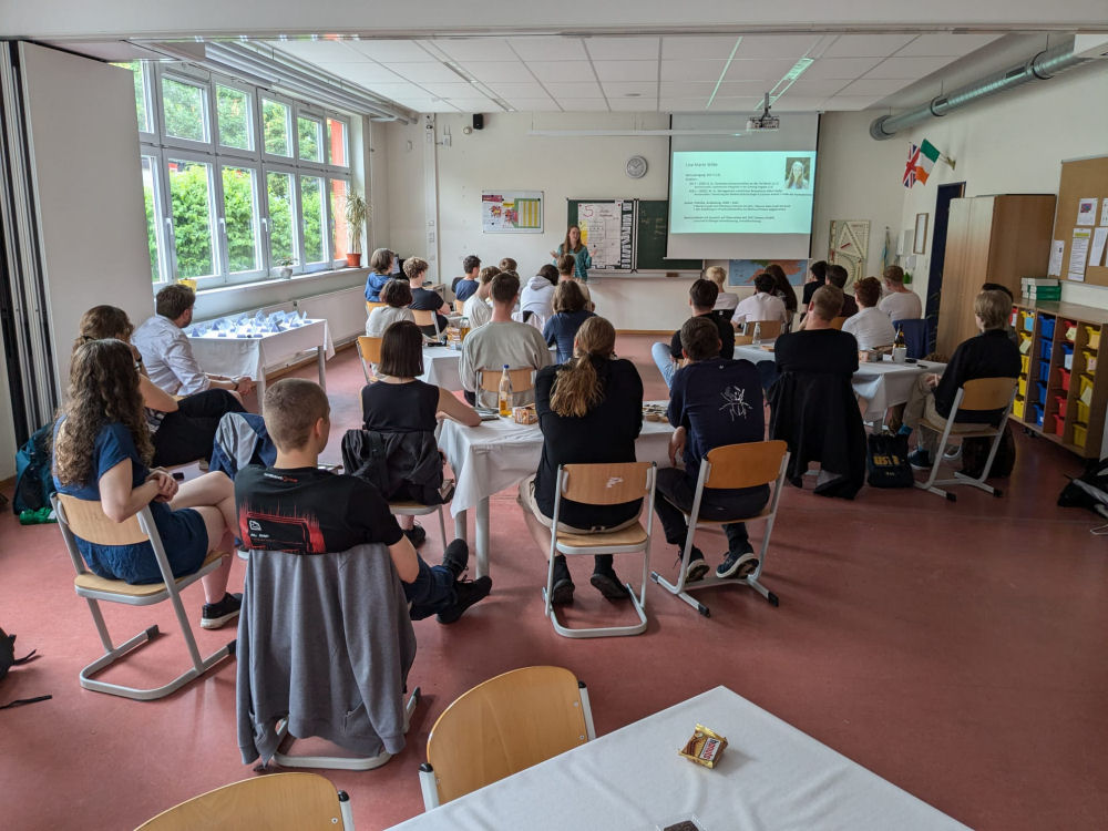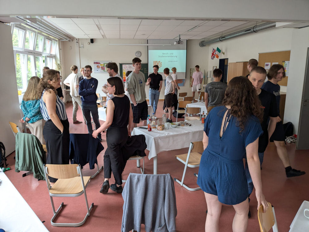 im Jahrgang 11 mit einem Studieninformationstag abgeschlossen. So erhielt der Kurs 11/3 am 12. Juli 2024 Besuch von 17 ehemaligen SchülerInnen unserer Schule, die beim gleichen Tutor den Weg zum Abitur gegangen sind. Nach einer kurzen Begrüßung 9.00 Uhr durch unsere Schulleiterin, Frau Roßland, konnte in den Tag gestartet werden. Ivonne und Marat (Abitur 2011), Richard und Felix (Abitur 2014), Lisa, Merle, Friederike, Peter, Clemens und Anton (Abitur 2017), Luna, Florian, Ellen, Maximilian und Richard (Abitur 2020) sowie Jim und Kilian (Abitur 2023) stellten ihren Weg nach dem Abitur zuerst in kurzen Präsentationen vor. Nach einer Mittagspause ging es in eine emotionale, tiefgründige Podiumsdiskussion rund um provokative Fragen das Abitur und den Weg danach betreffend. In drei Runden zu je 15 Minuten "Ehemaligen-Speed-Dating" konnten die 11-KlässlerInnen herausfinden, ob und wie es mit dem gewählten Leistungskursfach weitergehen kann, worauf im Abitur geachtet werden sollte, welche Prioritätensetzung perspektivisch Erfolg verspricht und wie das Leben im Allgemeinen nach dem Abitur gestaltet werden kann. Nach einem kurzen Feedback war der offizielle Teil des Tages gegen 16.30 Uhr abgeschlossen.