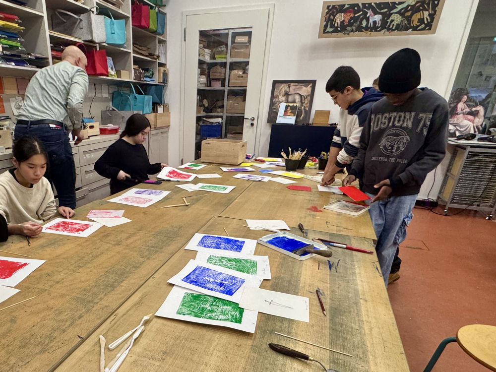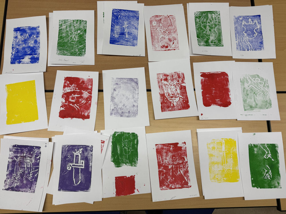 das Museum Barberini. Nachdem wir uns im Vorfeld im Kunstunterricht mit Fabelwesen beschäftigt und unsere eigenen Fabelwesen erschaffen hatten, bekamen wir im Museum eine Führung durch die Einhorn-Ausstellung. Wir erfuhren viel Interessantes zur historischen Darstellung von Einhörnern in der Kunst und konnten u.A. ein echtes "Einhorn", einen Narwalzahn, sehen. In den Ausstellungsräumen zeichneten wir dann Ausschnitte von Kunstwerken ab, um sie im anschließenden Workshop mit dem Titel "Vom Original zur Kopie" auf eine Styrodur-Platte zu übertragen. Diese wurden mit Farbe bestrichen und das entstandene Abbild unter Anwendung der erlernten Drucktechniken beliebig oft auf Papier gedruckt. Unsere Kunstwerke konnten wir anschließend mitnehmen.