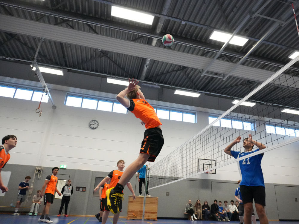 Mit sechs Mann aus der 10. Klasse ohne Auswechselspieler traten wir am 27.11.25 an der Steuben-Gesamtschule zum Wettbewerb "Jugend trainiert für Olympia - Volleyball U18" an. Alle sechs Spieler wären eigentlich im Praktikum gewesen. Einen großen Dank geht demnach an die Betriebe, die die jungen Männer freistellten. Es hätte ein Wintermärchen werden können... Das Helmholtz-Gymnasium, das Schiller-Gymnasium, die Steuben-Gesamtschule - alle schlugen wir souverän 2:0. Der erste größere Gegner hieß Humboldt, gegen die wir gleich im ersten Satz 0:9 hinten lagen. Wir besannen uns auf unser Spiel und drehten noch fast den ersten Satz. Mit neuer Zuversicht überrannten wir die Gegner in Satz 2 und 3 und gewannen verdient. Nur das Hannah-Arendt-Gymnasium hatte bis dahin ähnlich viele Siege und kam aber aus einer Niederlage gegen die Steuben-Gesamtschule. Wir wissen immer noch nicht, ob wir uns zu sehr in Sicherheit gewogen hatten oder die Luft raus war. Aber in zwei Sätzen fanden wir gar nicht ins Spiel und verloren verdient gegen technisch starke Spieler des HAG. Der Traum des Regionalfinales platzte und die Jungs waren am Boden zerstört. Seit vier Jahren gewinnen und verlieren wir zusammen und irgendwann schaffen wir es. Danke an alle Beteiligten, vor allem die Bank (Robert und Konsti), die so viel Lärm gemacht haben, und Herrn Kanski, der die Emotionen alle auf Kamera festhalten konnte.