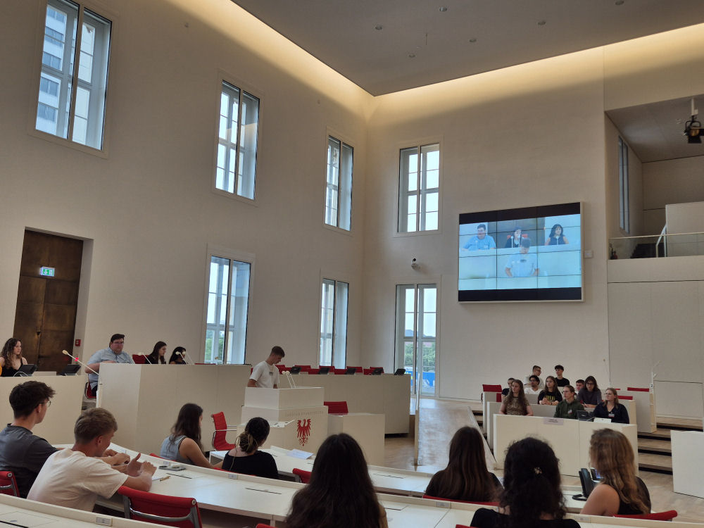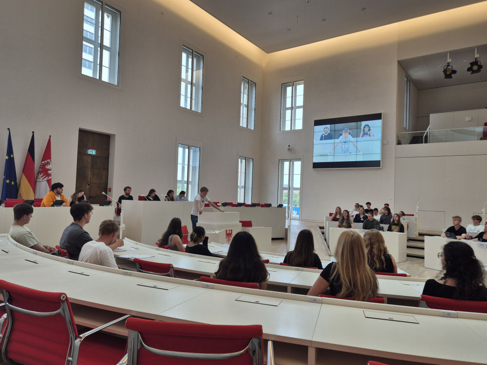 den Brandenburger Landtag in Potsdam. Im Rahmen eines spannenden Planspiels zum Thema „Führerschein ab 16?“ schlüpften die Schülerinnen und Schüler in die Rollen von Abgeordneten, diskutierten in Fraktionen, berieten in Ausschüssen und hielten leidenschaftliche Reden im Plenarsaal. So konnten sie politische Prozesse hautnah erleben und ein besseres Verständnis für parlamentarische Arbeit gewinnen.