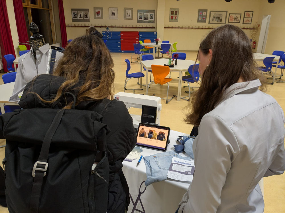 Nach nun 10-wöchiger harter, aber total spannender Arbeit waren nicht nur genügend Produkte, sondern auch das gesamte PR-Material fertig. Zeit also, sich bei der gesamten Lehrerschaft einmal vorzustellen. Gesagt - getan. Am 19. November konnten Pauline und Daniel das junge Unternehmen mit einer kurzen Präsentation vorstellen. Parallel dazu erklärten Neele und Nele an einem Messestand den Produktionsprozess und diskutierten mit den LehrerInnen über weitere Taschenvarianten.