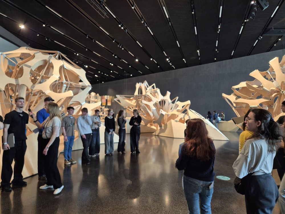 – ein Ort, an dem sich alles um die Frage dreht: Wie wollen wir in Zukunft leben? Schon beim Betreten des modernen Gebäudes wurde deutlich, dass hier nicht nur geschaut, sondern vor allem ausprobiert und mitgedacht wird. In der Ausstellung konnten die Schülerinnen und Schüler interaktive Stationen erkunden, die sich mit Themen wie Nachhaltigkeit, Technologie und gesellschaftlichem Wandel beschäftigen.